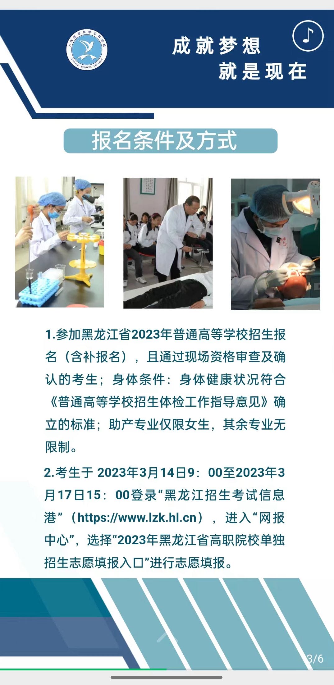更多详情:大庆医学高等专科学校2023年单招简章